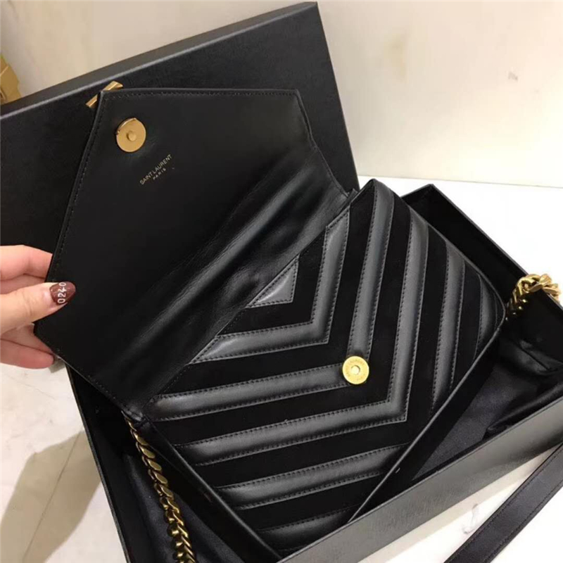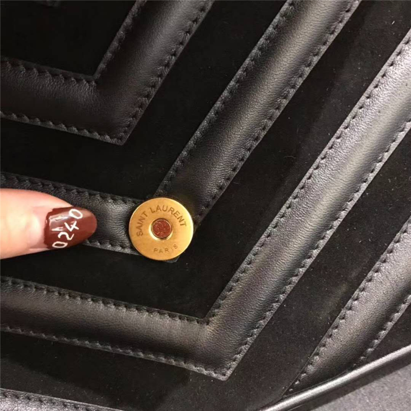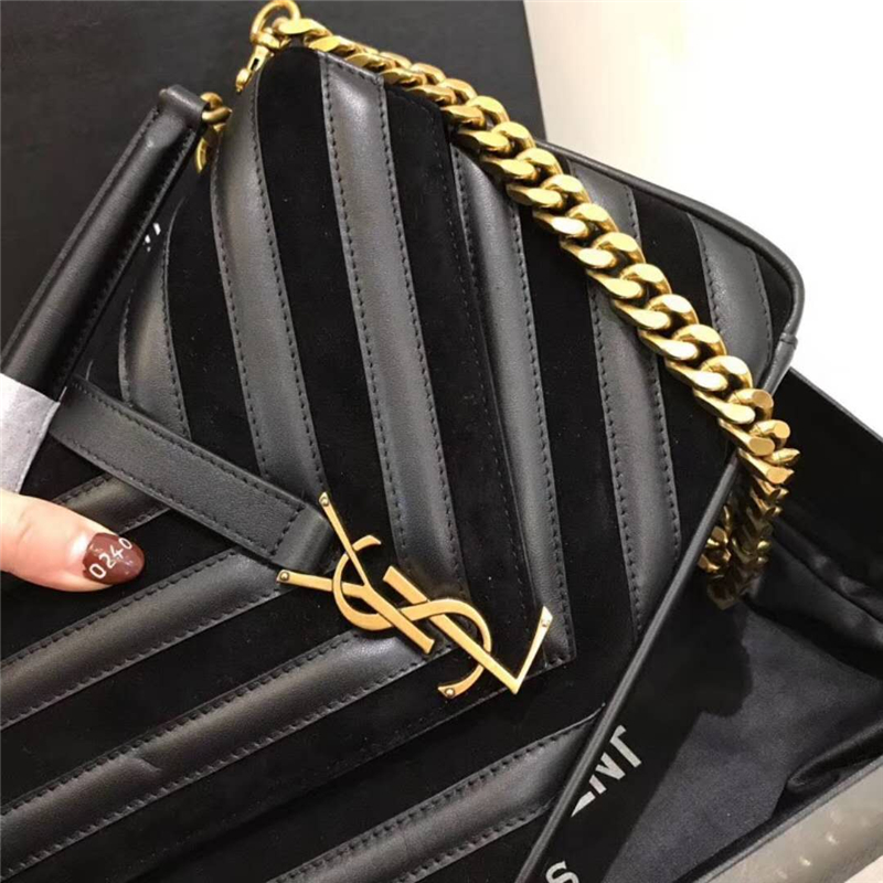 - 392737 YSL圣罗兰 麂皮拼羊皮 V纹 中号 链条邮差包 黑色