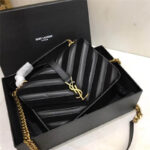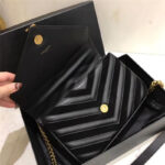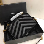392737 YSL圣罗兰 麂皮拼羊皮 V纹 中号 链条邮差包 黑色