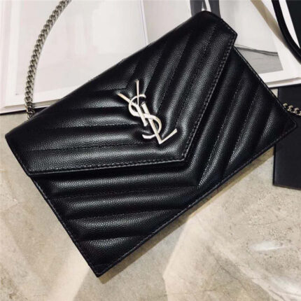 393953 YSL 进口鱼子酱皮 圣罗兰 真皮信封链式 YSL皮夹 卡其