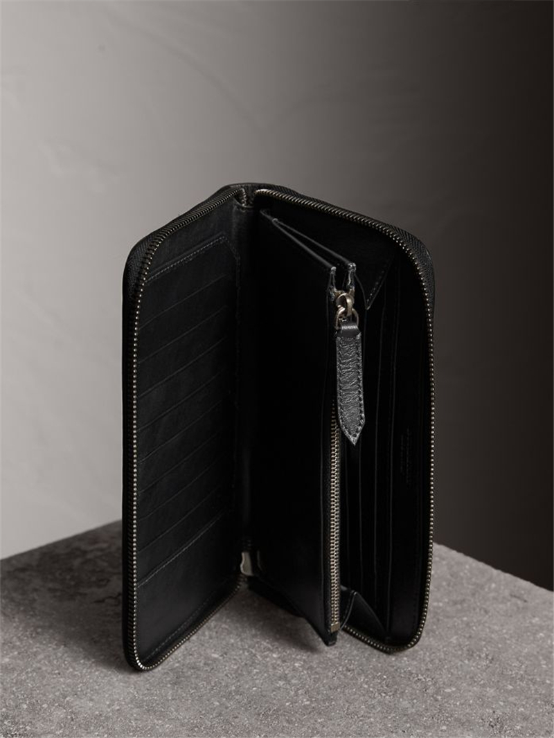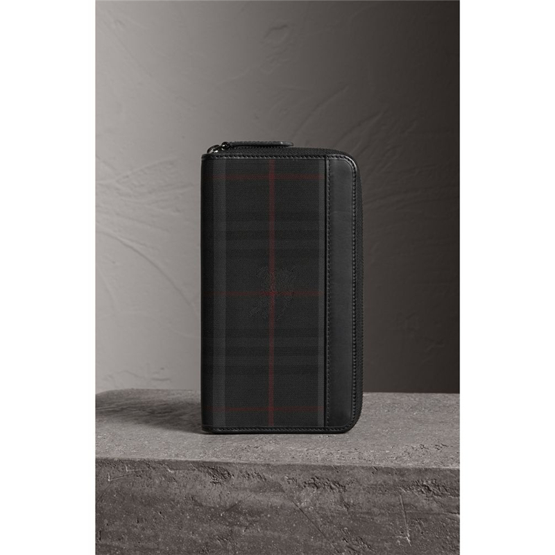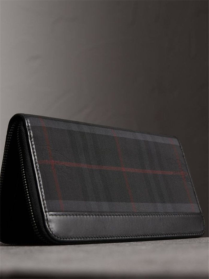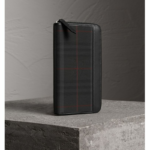 39455641 巴宝莉 Horseferry 格纹 全拉链 大号 钱夹 炭灰色/黑色