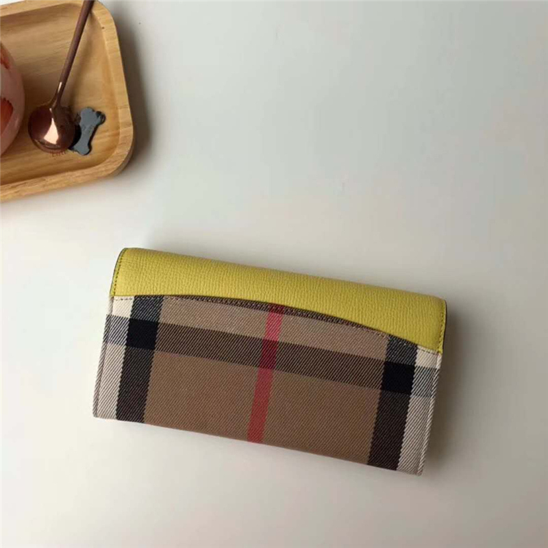 - 39928851 Burberry巴宝莉 Banner手袋系列 House格纹 拼皮长款钱夹 柠檬黄