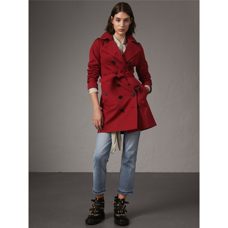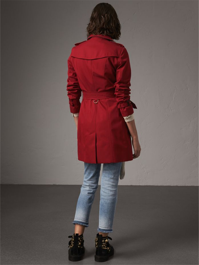 - 39970301 巴宝莉 桑德林汉姆版型 女士中长款 Trench 风衣 缤纷红色