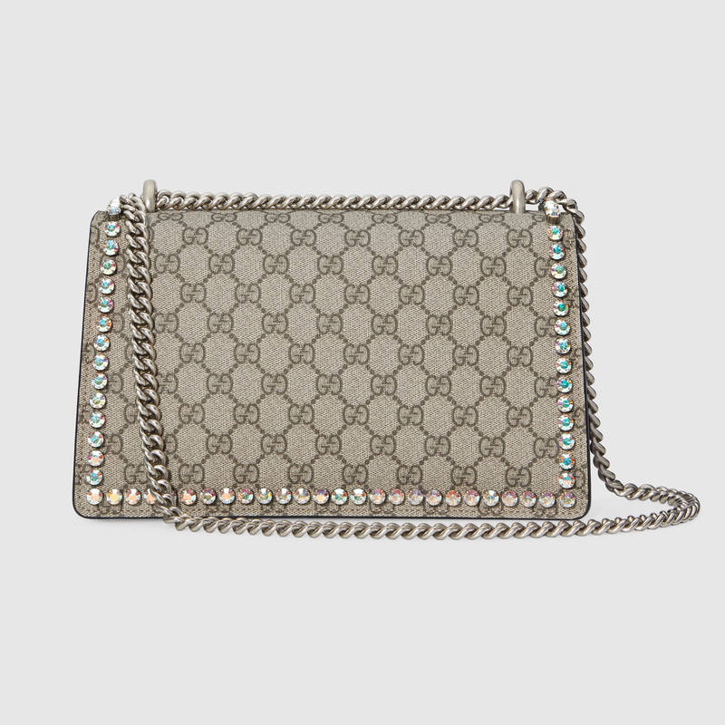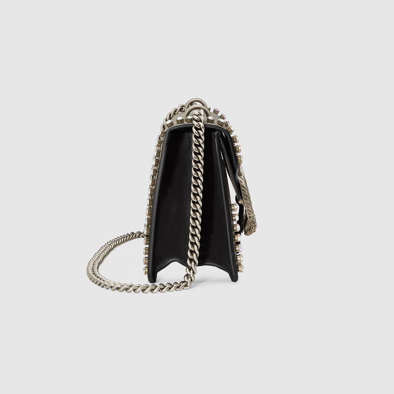 - 详细介绍:Dionysus 系列肩背包,配以如今颇具代表性的织纹虎头扣——此独特细节灵感来源于希腊神祇狄俄尼索斯(Dionysus 系列),在神话中,他曾骑在宙斯(Zeus)派来的老虎身上,越过底格里斯河(Tigris)。滑动链条包有多种背法,可在肩背和手提之间自由转换。造型边缘装饰大号水晶,外形独特醒目。