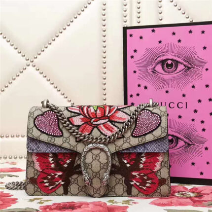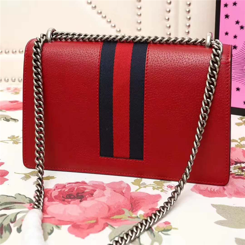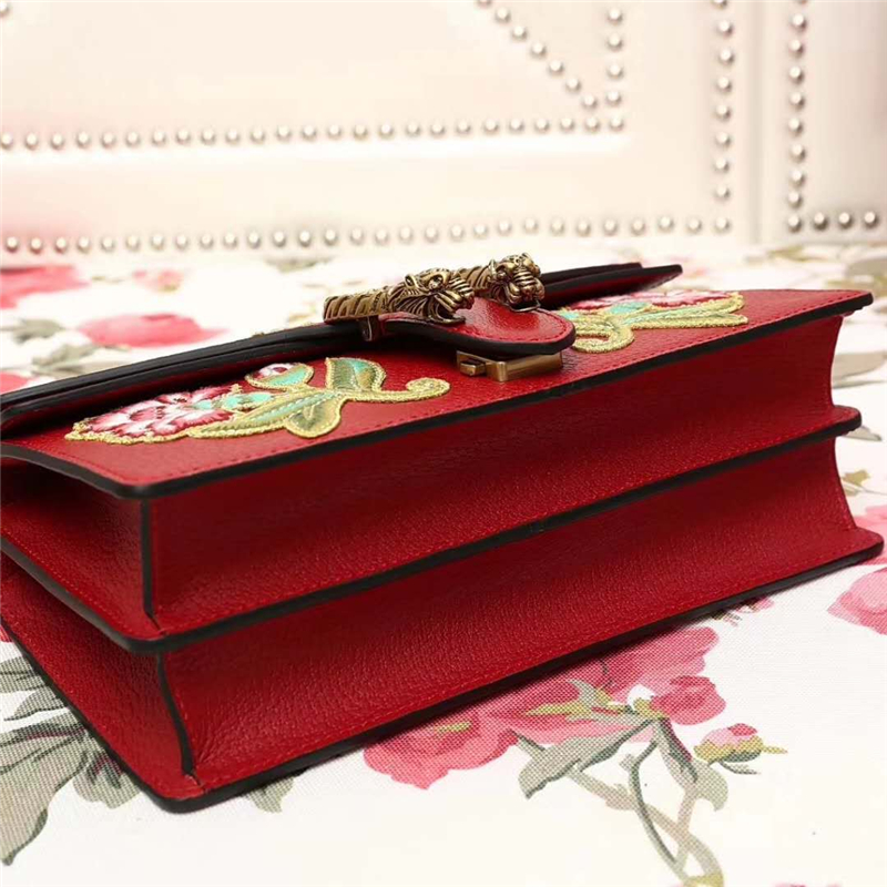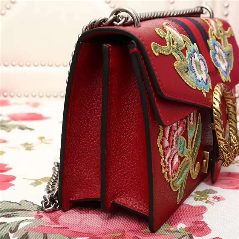 - 400249 Dionysus系列 Gucci酒神链条肩背包 刺绣贴花 虎头扣 芙蓉红