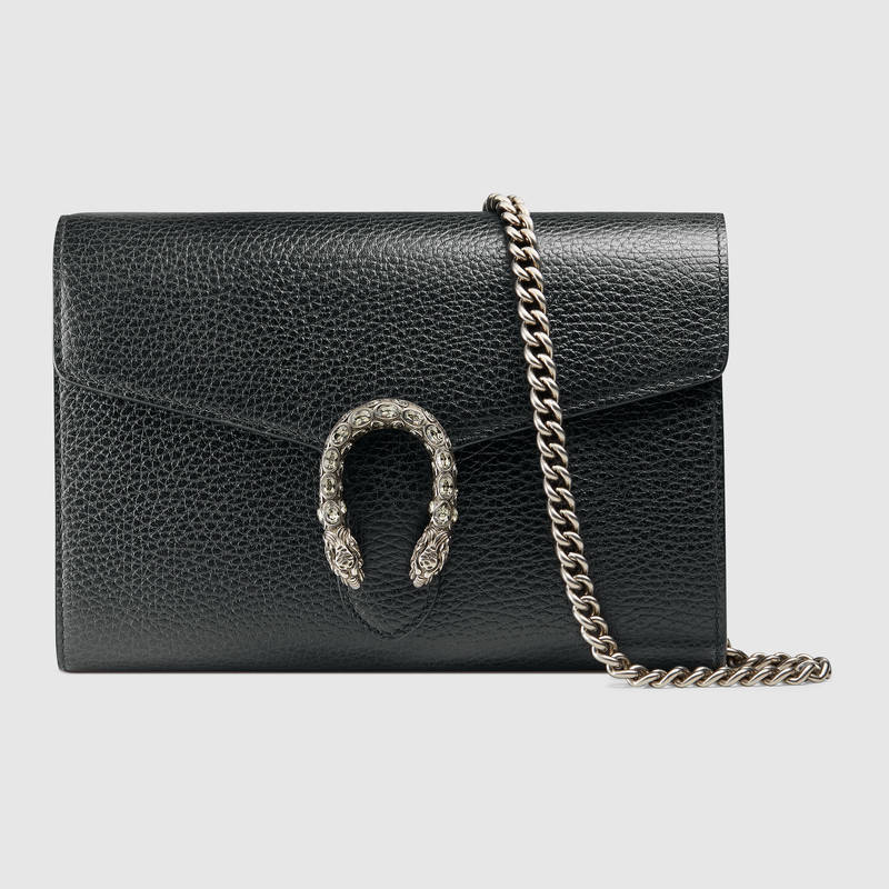 401231 GUCCI Dionysus 系列 织纹皮革 迷你链条 皮夹手袋 黑色
