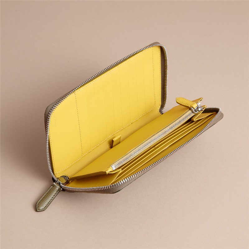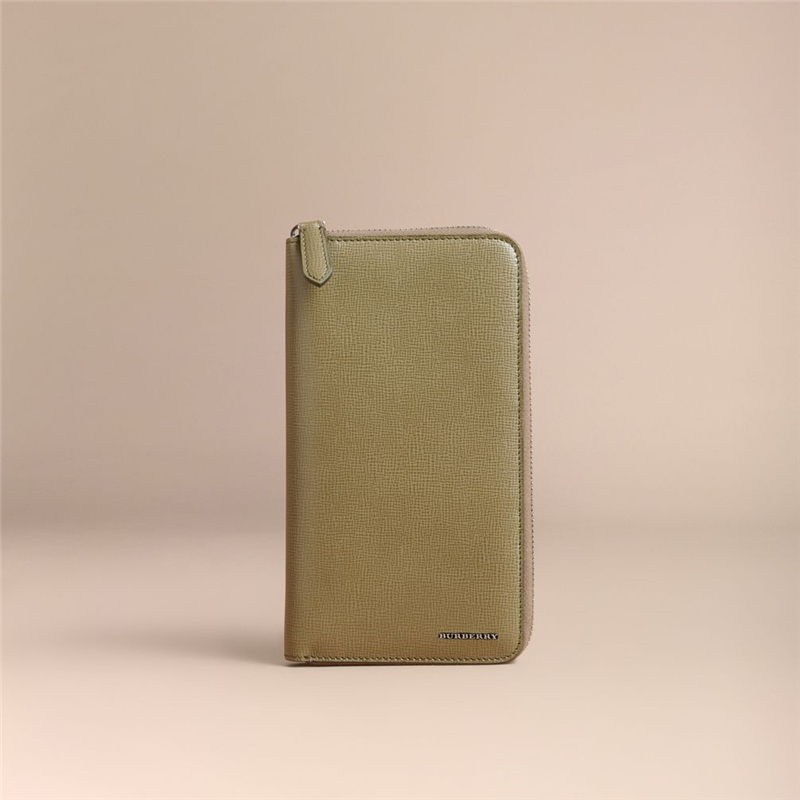 - 40520931 巴宝莉 London 光滑皮革 全拉链 巴宝莉钱包 旅行钱夹 橄榄绿