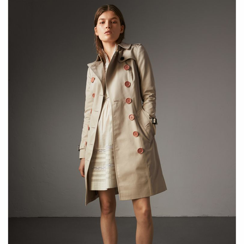 40556981 巴宝莉 切尔西版型 树脂纽扣 长款 棉质嘎巴甸 Trench 风衣 石色