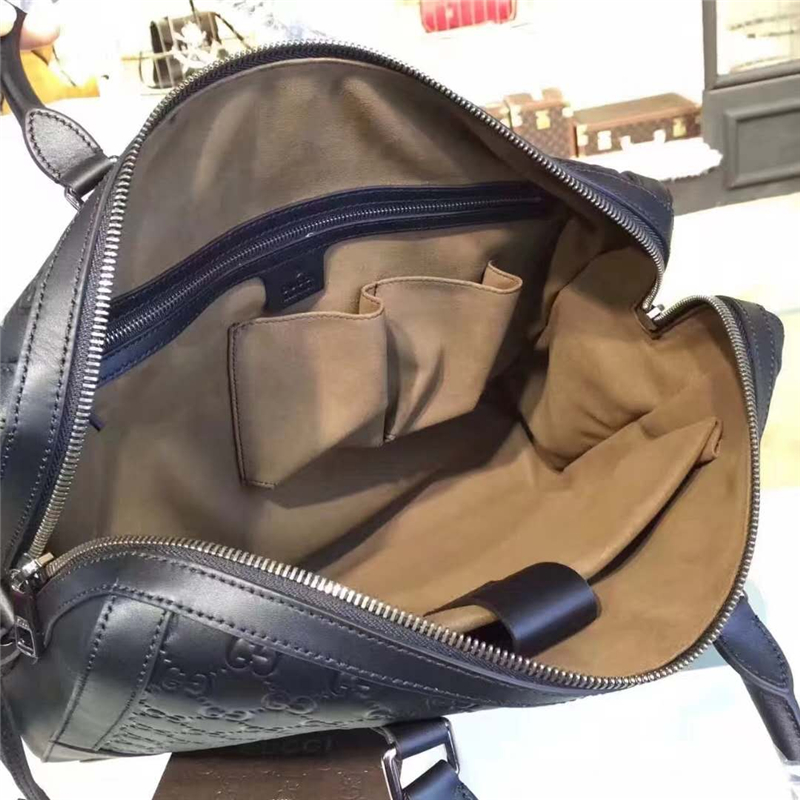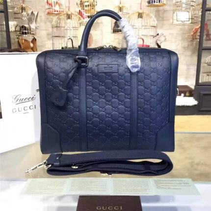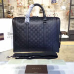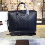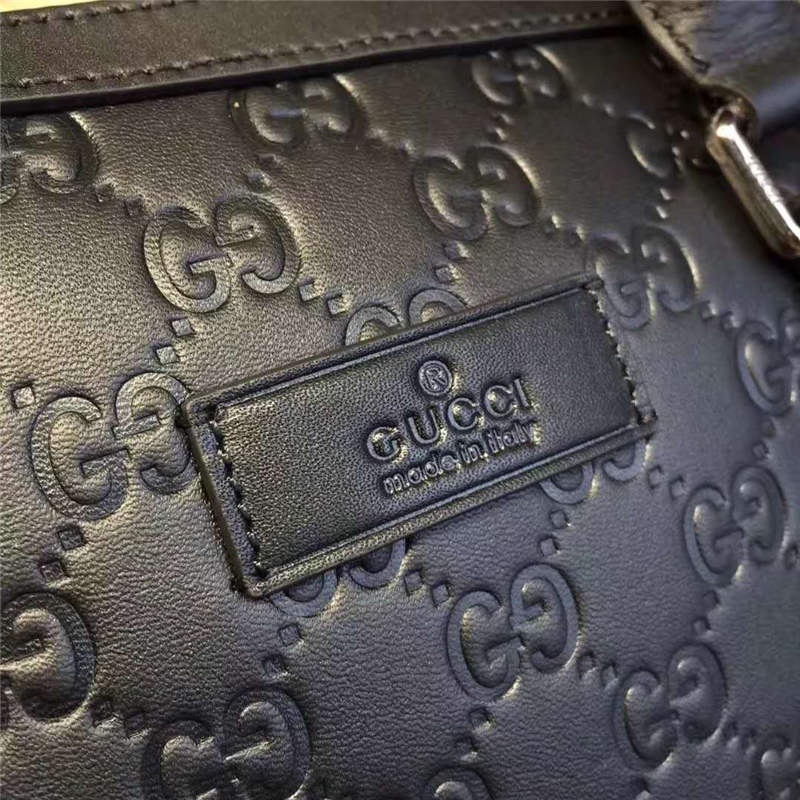 406384 Gucci标志真皮 热压纹 手提肩背公文包 黑色
