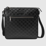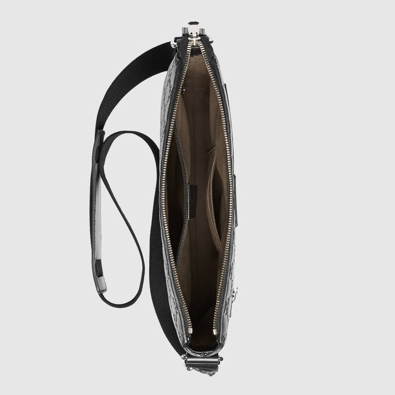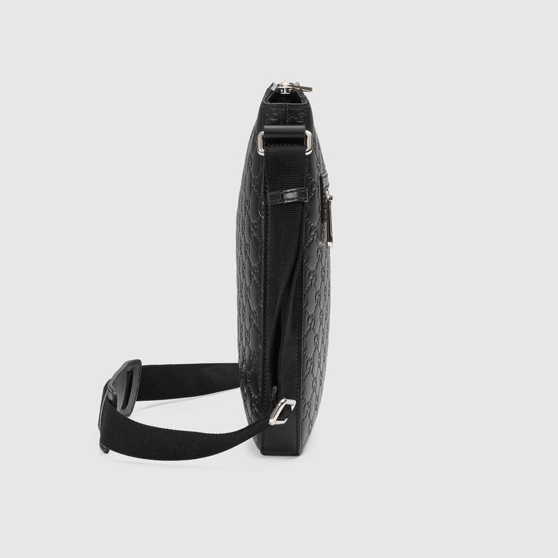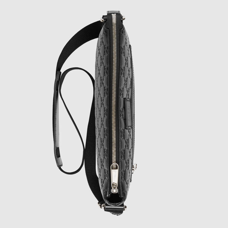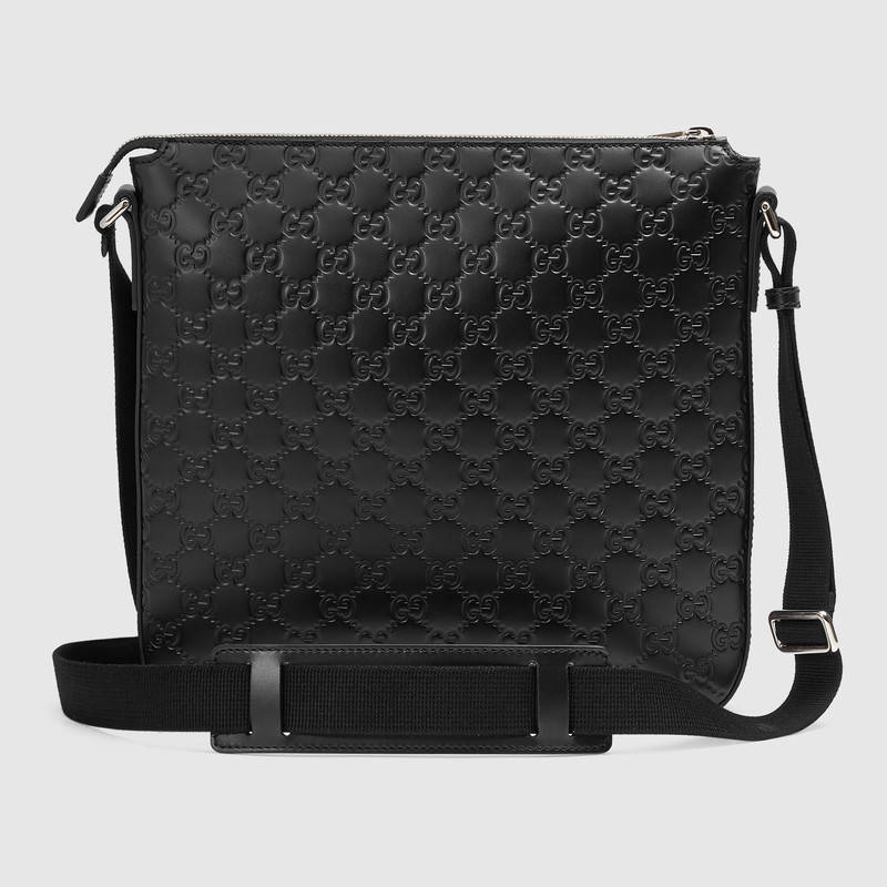 - 406408 GUCCI Gucci Signature真皮 前襟拉链 中号扁平 邮差包 黑色