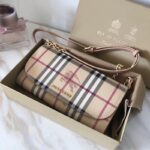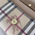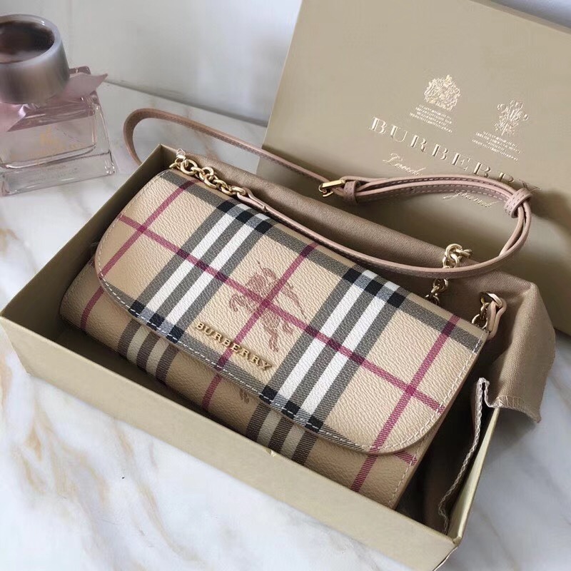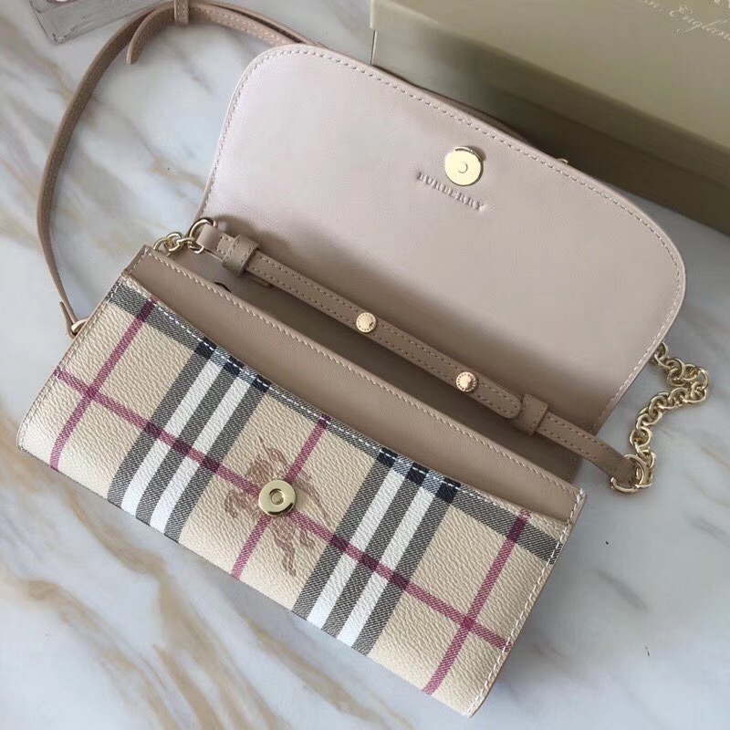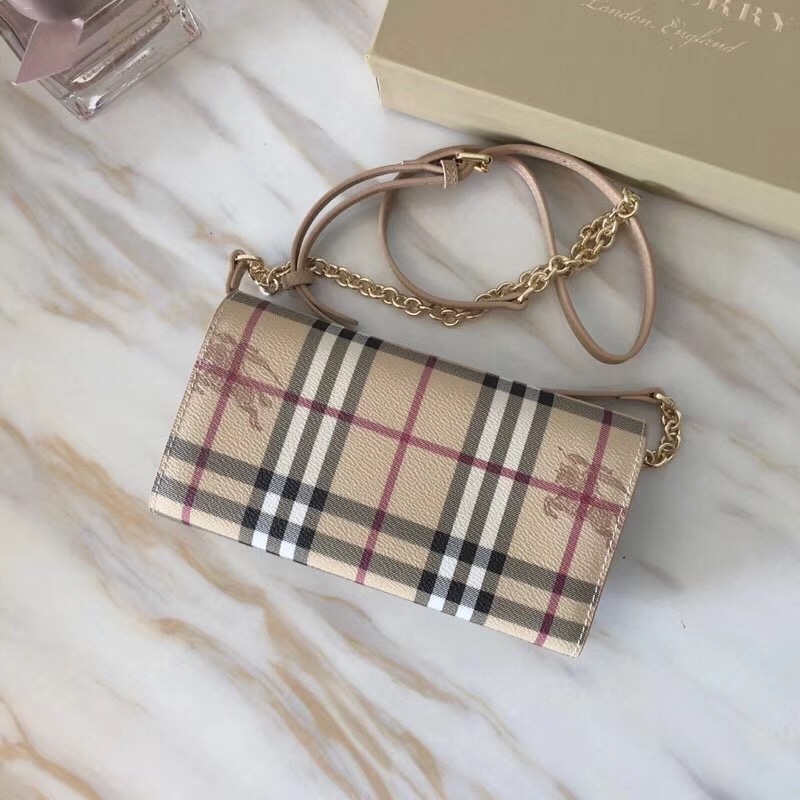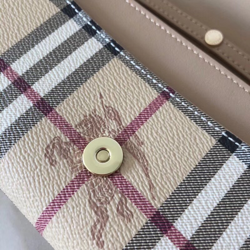 40732211 Burberry Vintage格纹 拼皮革 战马印花 链饰钱夹 杏色