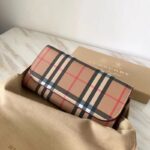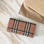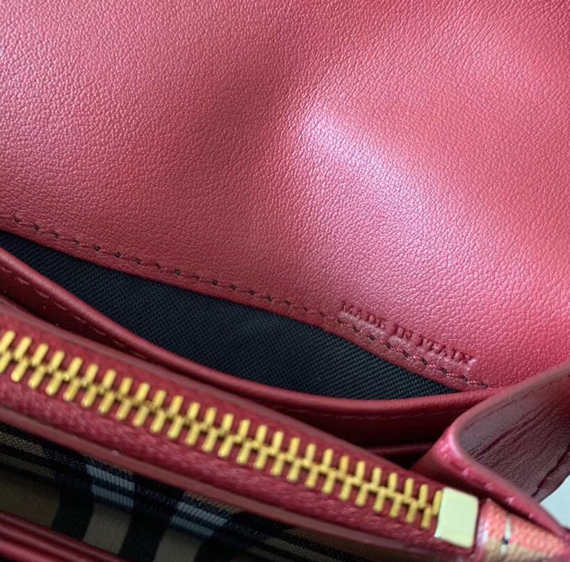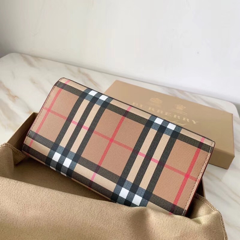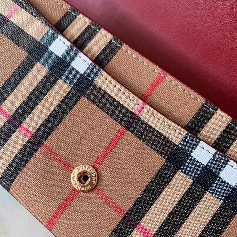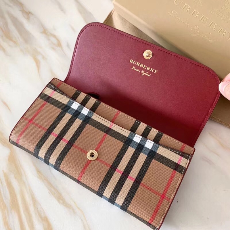 - 40734271 Burberry女款钱包 Vintage格纹拼皮革 撞色 巴宝莉长款钱夹 绯红