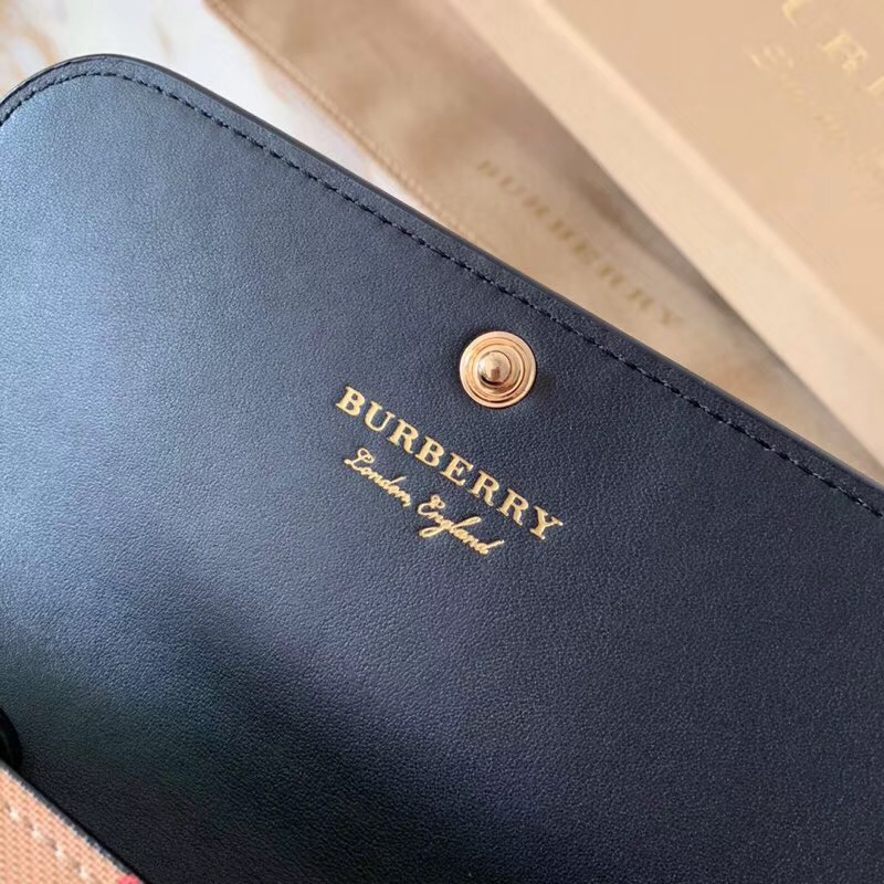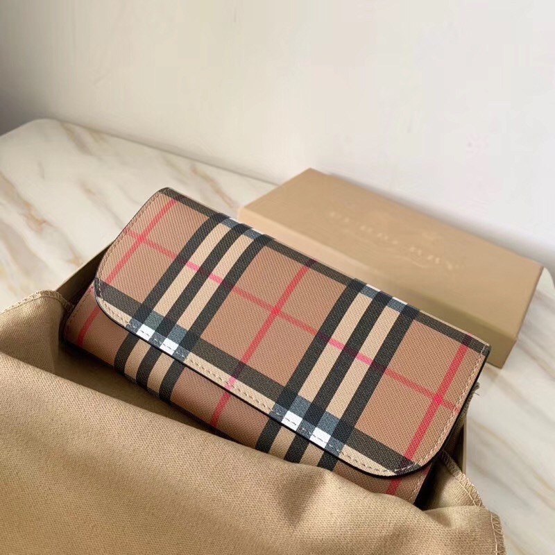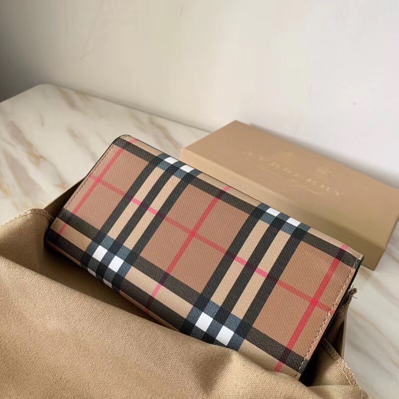 40734271 Burberry女款钱包 Vintage格纹拼皮革 撞色 巴宝莉长款钱夹 黑色
