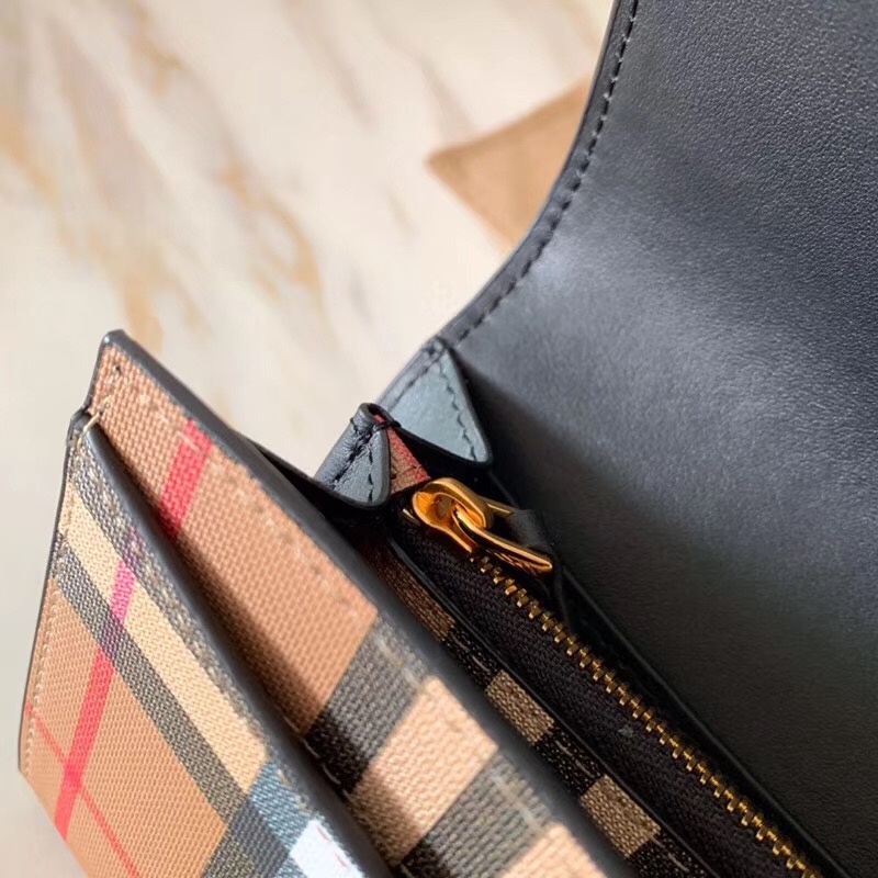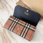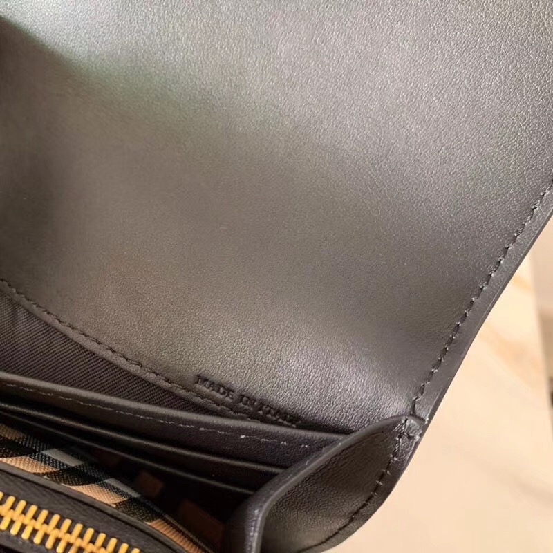 - 40734271 Burberry女款钱包 Vintage格纹拼皮革 撞色 巴宝莉长款钱夹 黑色