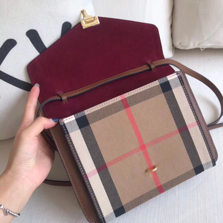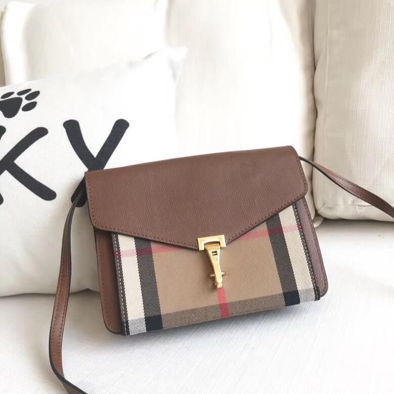 40799671 巴宝莉 House格纹拼皮革 迷你斜背包 啡色