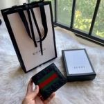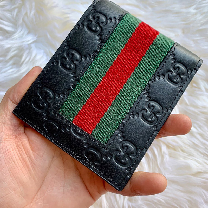 408827 GUCCI 古驰 男士黑色牛皮红绿条纹双G压纹短款钱包