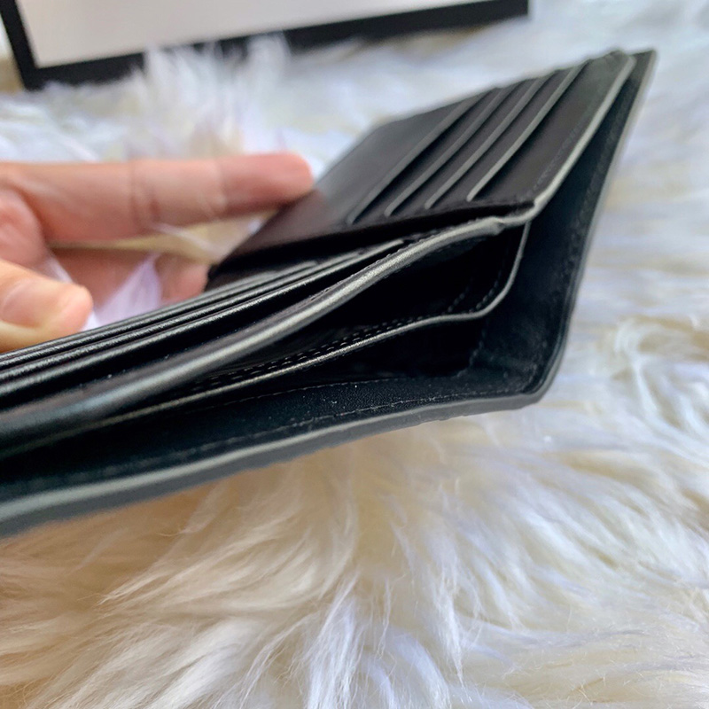 - 408827 GUCCI 古驰 男士黑色牛皮红绿条纹双G压纹短款钱包