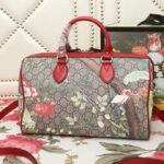 409527 GUCCI GG Blooms花鸟印花 帆布拼皮 波士顿手提包 红色