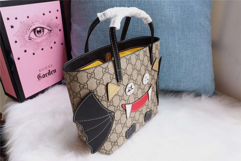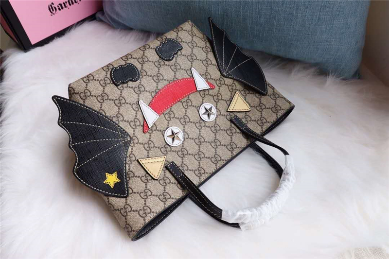 410812 Gucci手袋 立体卡通图案 布纹牛皮 古驰mini购物袋 黑色