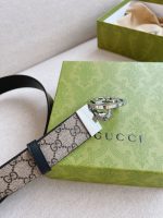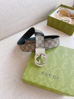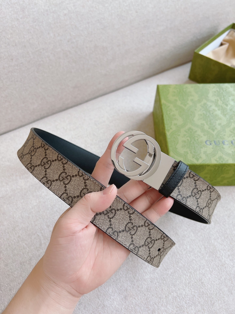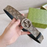 • 411924 Gucci互扣式双G带扣GG Supreme帆布男士腰带 乌木色
