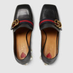 425943 GUCCI 双G装饰 皮革 GG珍珠和铆钉 中跟乐福鞋 黑色