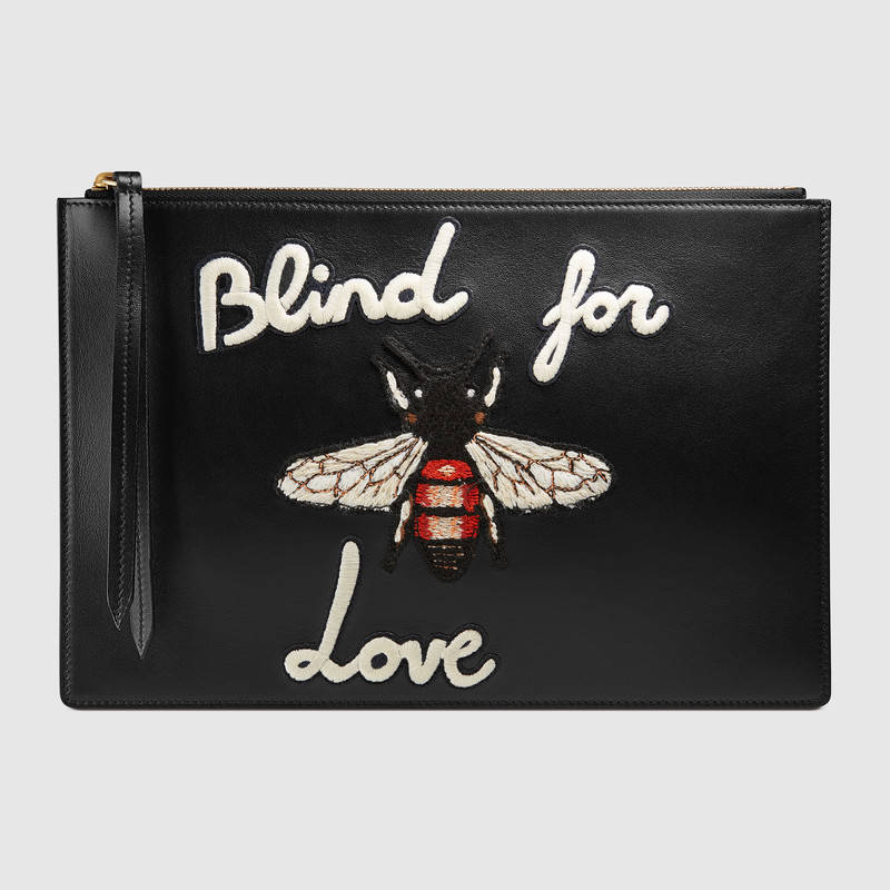 431416 GUCCI 贴花刺绣 皮革 手拿包 黑色