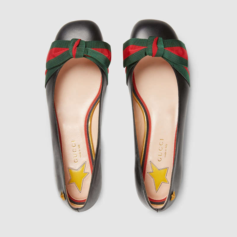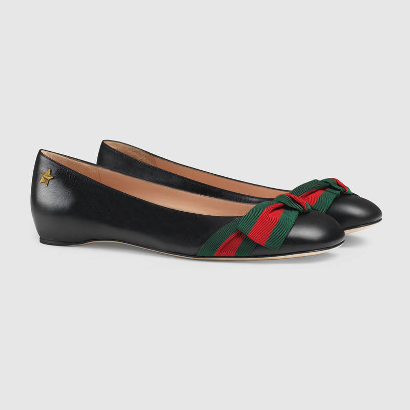 - 详细介绍:圆头平底鞋,装饰性罗缎织带蝴蝶结缠绕整个鞋头。织带作为对品牌精神传承的一种象征,一直以来都是Gucci每个新系列的基本元素。