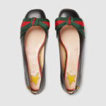- 结构:黑色皮革,绿/红/绿罗缎Web织带蝴蝶结,金色星星铆钉