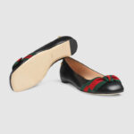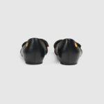432045 GUCCI 铆钉 罗缎织带 真皮 圆头平底鞋 黑色