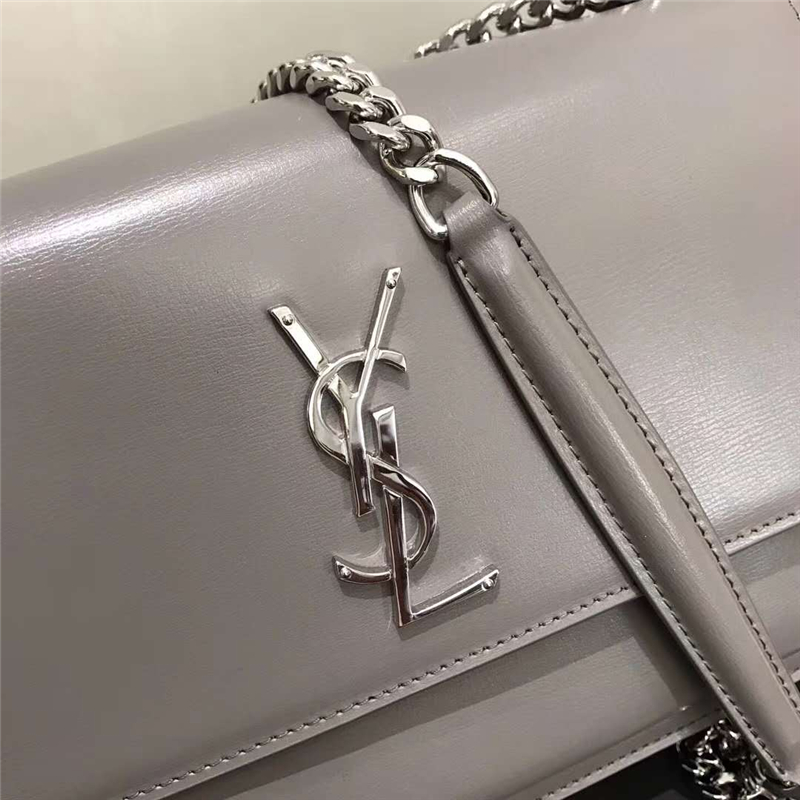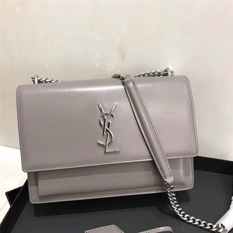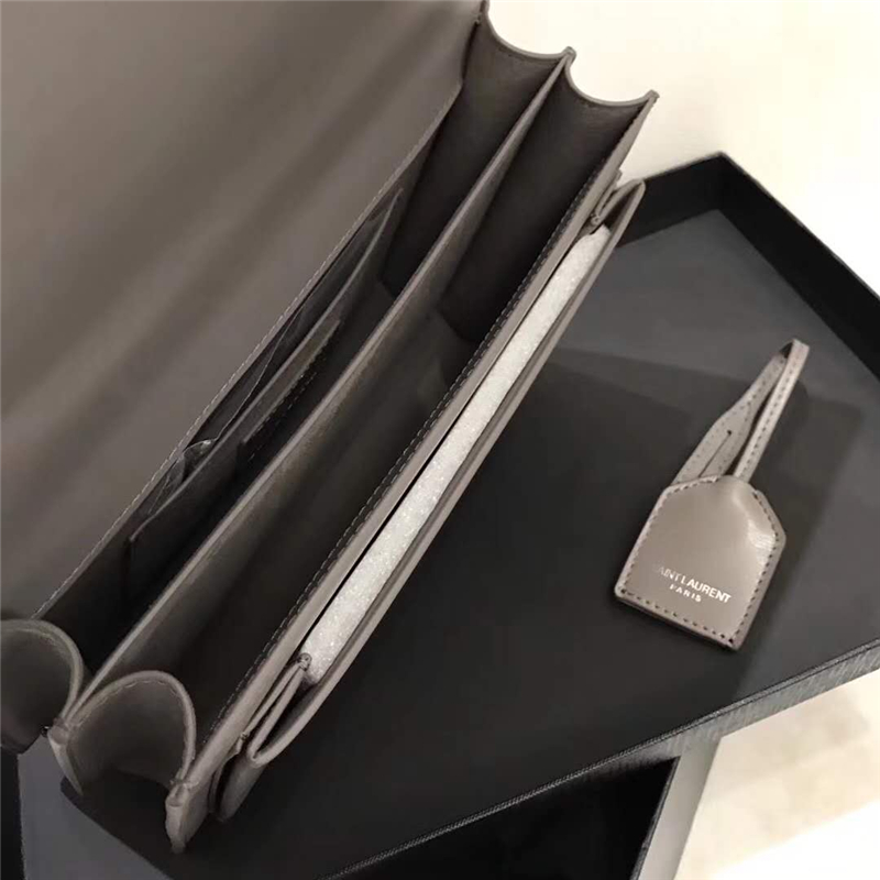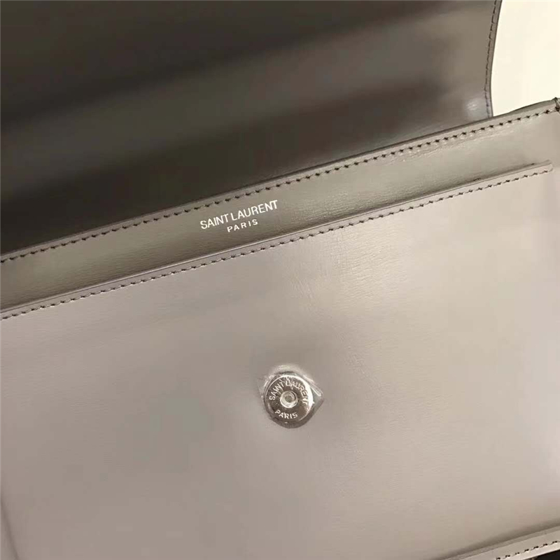 - 442906 YSL圣罗兰 Sunset最新 牙签纹牛皮 翻盖链条包 灰色