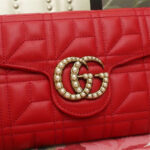 - 443122 Gucci链条包 双G珍珠扣翻盖 古驰斜跨女包 红色