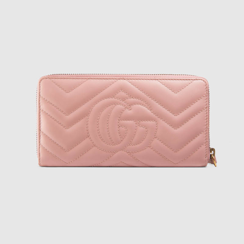 - 443123 GUCCI GG Marmont系列 绗缝皮革 双G 全拉链式皮夹 浅粉色