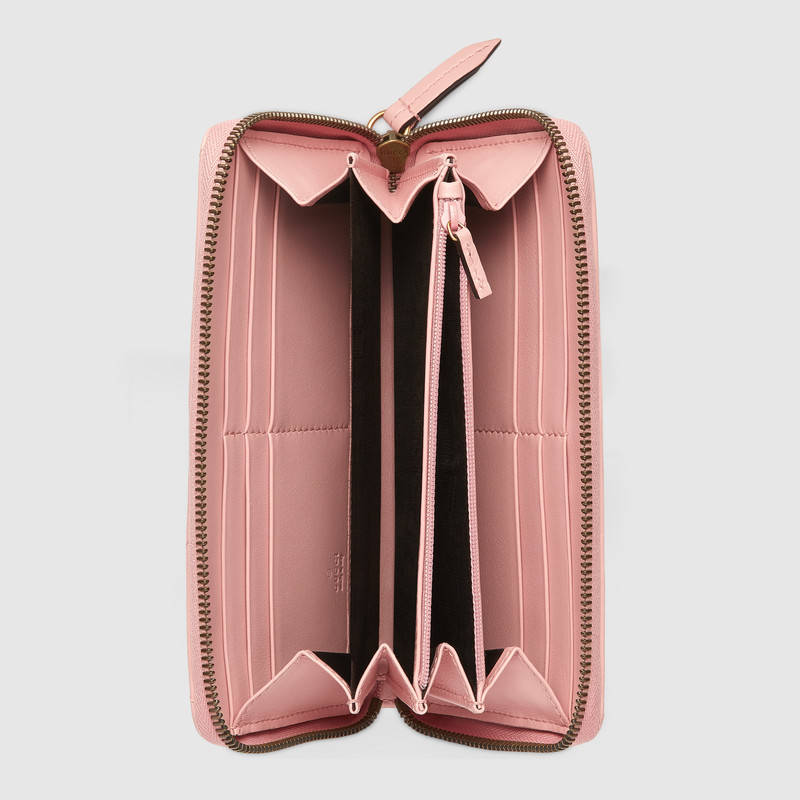 443123 GUCCI GG Marmont系列 绗缝皮革 双G 全拉链式皮夹 浅粉色