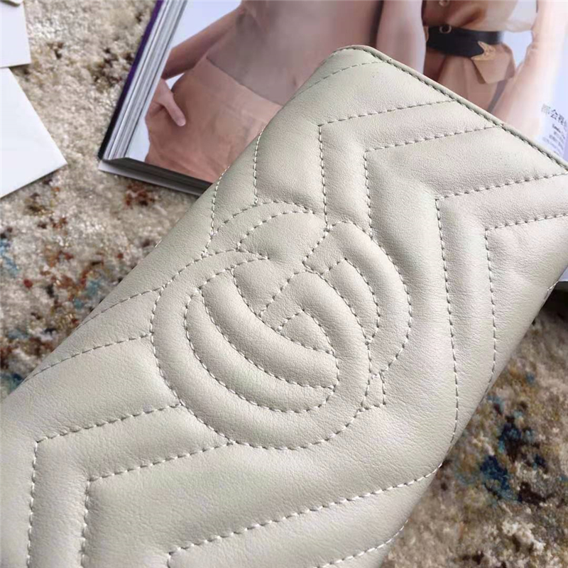 443436 GUCCI GG Marmont系列 绗缝皮革 双G 长款皮夹 白色