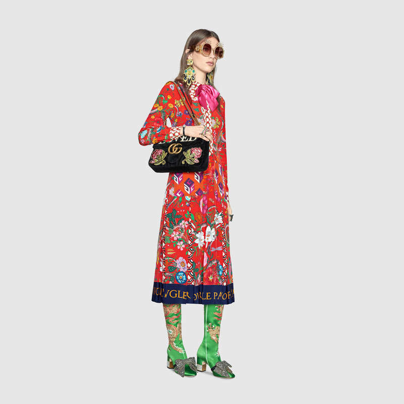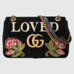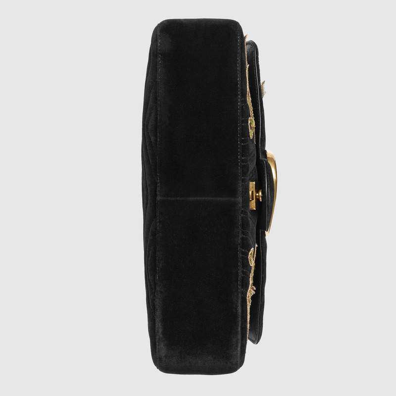 - 443496 GUCCI GG Marmont系列 刺绣 人形花纹天鹅绒 肩背包 黑色