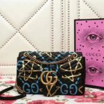 - 443496 Gucci GG Marmont系列 绗缝 涂鸦印花 大号 链条肩背包 黑色