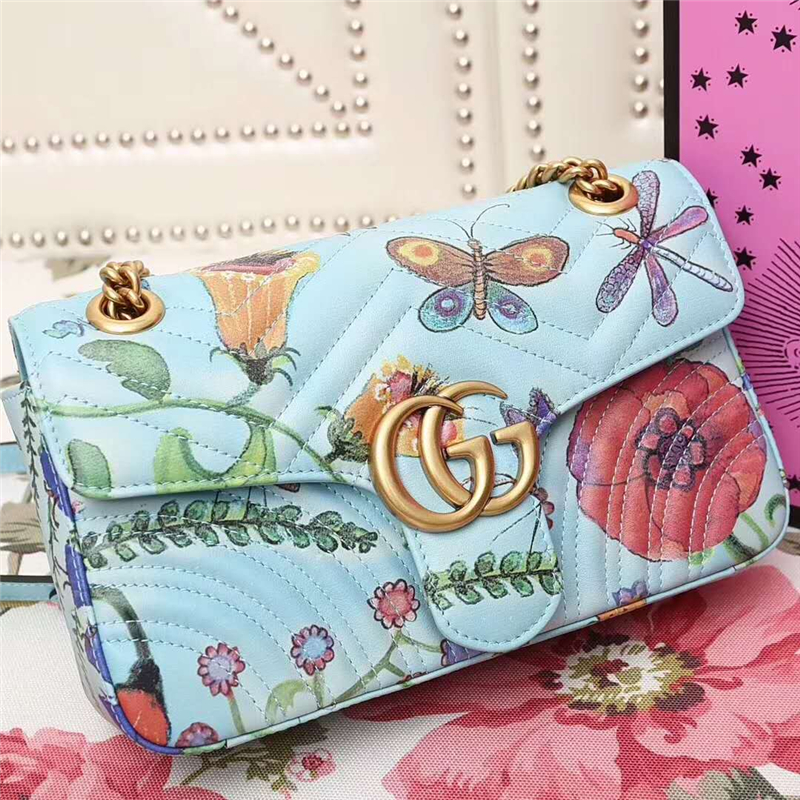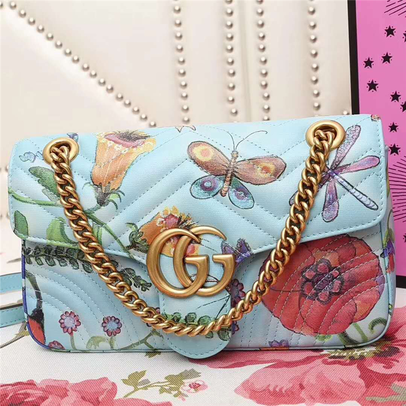 - 443497 GUCCI Unskilled Worker GG Marmont系列 彩绘印花 肩背包