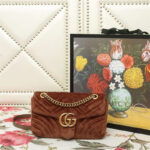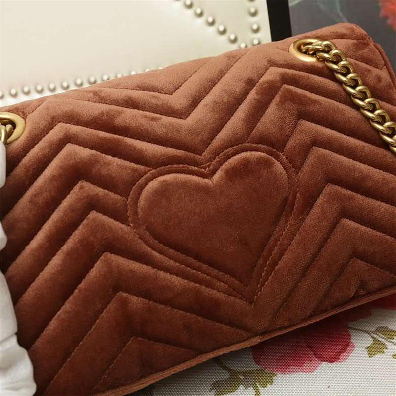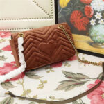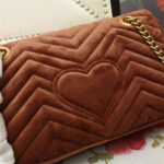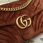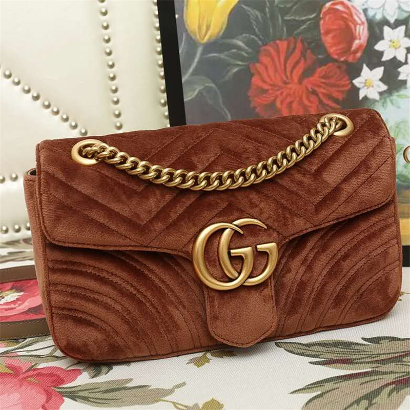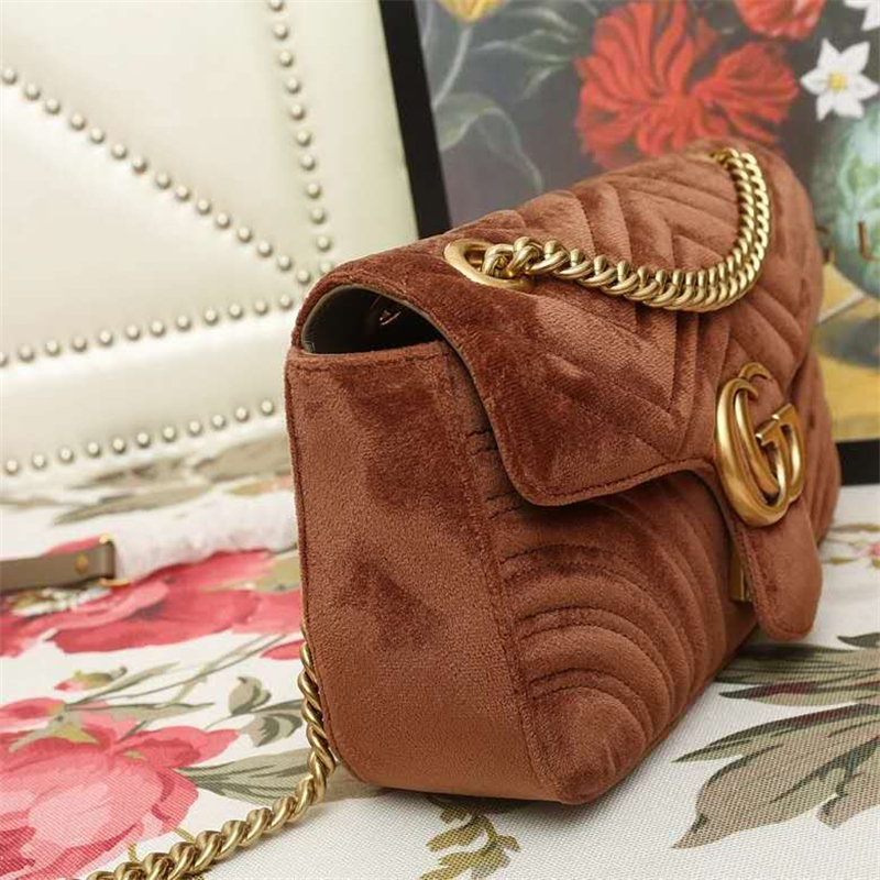 - 443947 Gucci女包 GG Marmont系列 天鹅绒 小号 古驰链条包 Gucci斜挎包 棕色