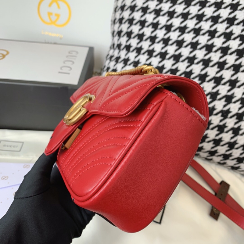 - 446744 Gucci古驰女包 GG Marmont 绗缝迷你手袋 红色
