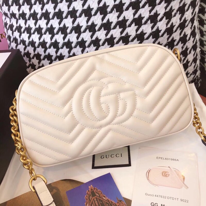 - 447632 Gucci GG Marmont系列小号绗缝肩背包 古驰相机包 白色
