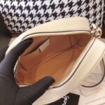 - 结构:白色波浪纹绗缝皮革,配以 GG 标志 复古金色金属配件 双G 内部开口口袋 链式肩带高60厘米。最小长度:123厘米,最大长度:133厘米。可作为斜挎包使用。 顶部拉链式封口 重量:约0.85千克