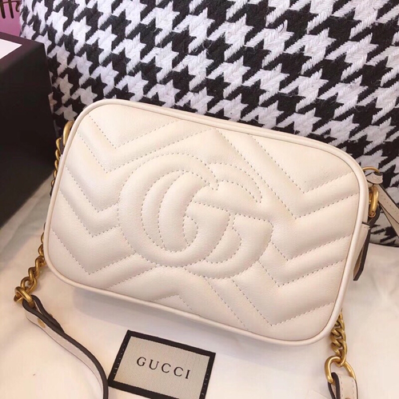 448065 Gucci GG Marmont系列绗缝迷你手袋 古驰相机包 白色