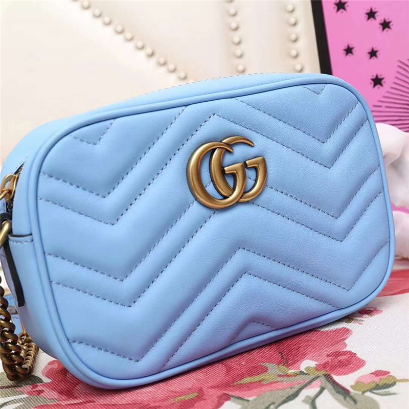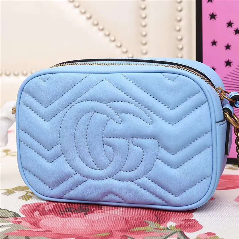- 448065 GUCCI GG Marmont系列 绗缝 迷你手袋 链带肩背包 水蓝色