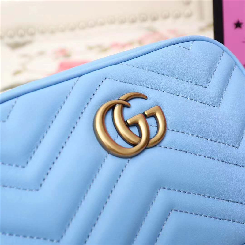 448065 GUCCI GG Marmont系列 绗缝 迷你手袋 链带肩背包 水蓝色