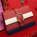 - 详细介绍:具有结构感的对比 dionysus 皮革手袋,配以织纹虎头马刺扣 — 此独特细节灵感来源于希腊神狄俄尼索斯 (dionysus) ,神话中,他曾骑在宙斯 (zeus) 派来的老虎身上,越过底格里斯河 (tigris)。采用优质粒面皮革精制而成,其以光泽感和柔软度而著称。