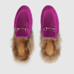 448657 GUCCI Princetown系列 马衔扣 天鹅绒 拖鞋 紫红色