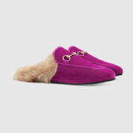 - 448657 GUCCI Princetown系列 马衔扣 天鹅绒 拖鞋 紫红色