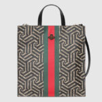 450950 GUCCI GG Caleido 系列 红绿织带装饰 柔软质感 购物袋 乌木色拼黑