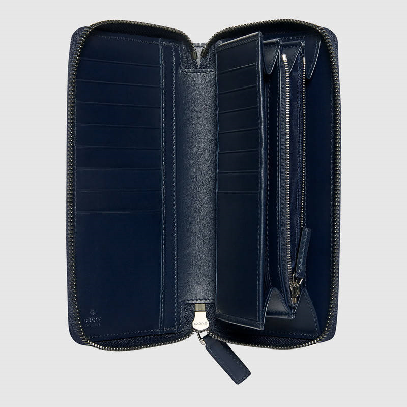 - 详细介绍:大号长款皮夹采用热压印技术的Gucci Signature真皮精制而成,触感厚实,印花图案清晰分明。蓝色Gucci Signature真皮,配以蓝色真皮滚边,16个卡片隔层和2个钞票隔层,拉链零钱袋,全拉链式封口