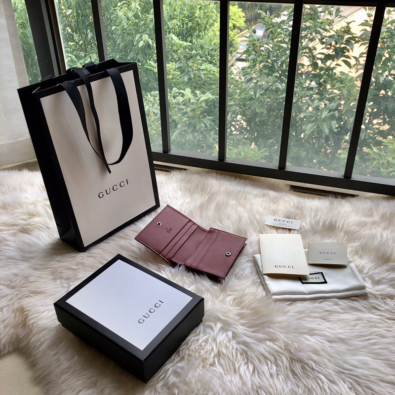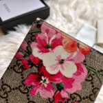 - 453176 Gucci GG Blooms 印花卡其配粉色人造帆布零钱包 卡片夹