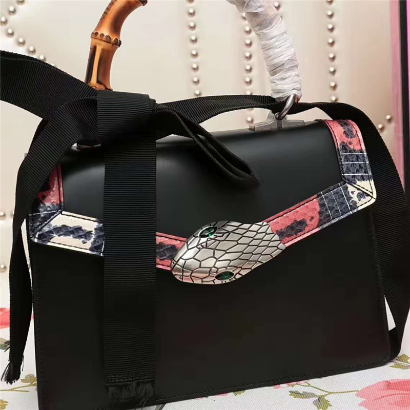 - 453751 Lilith 2017款 绿宝石蛇头 竹节提手 蝴蝶结 单肩斜跨包 黑色